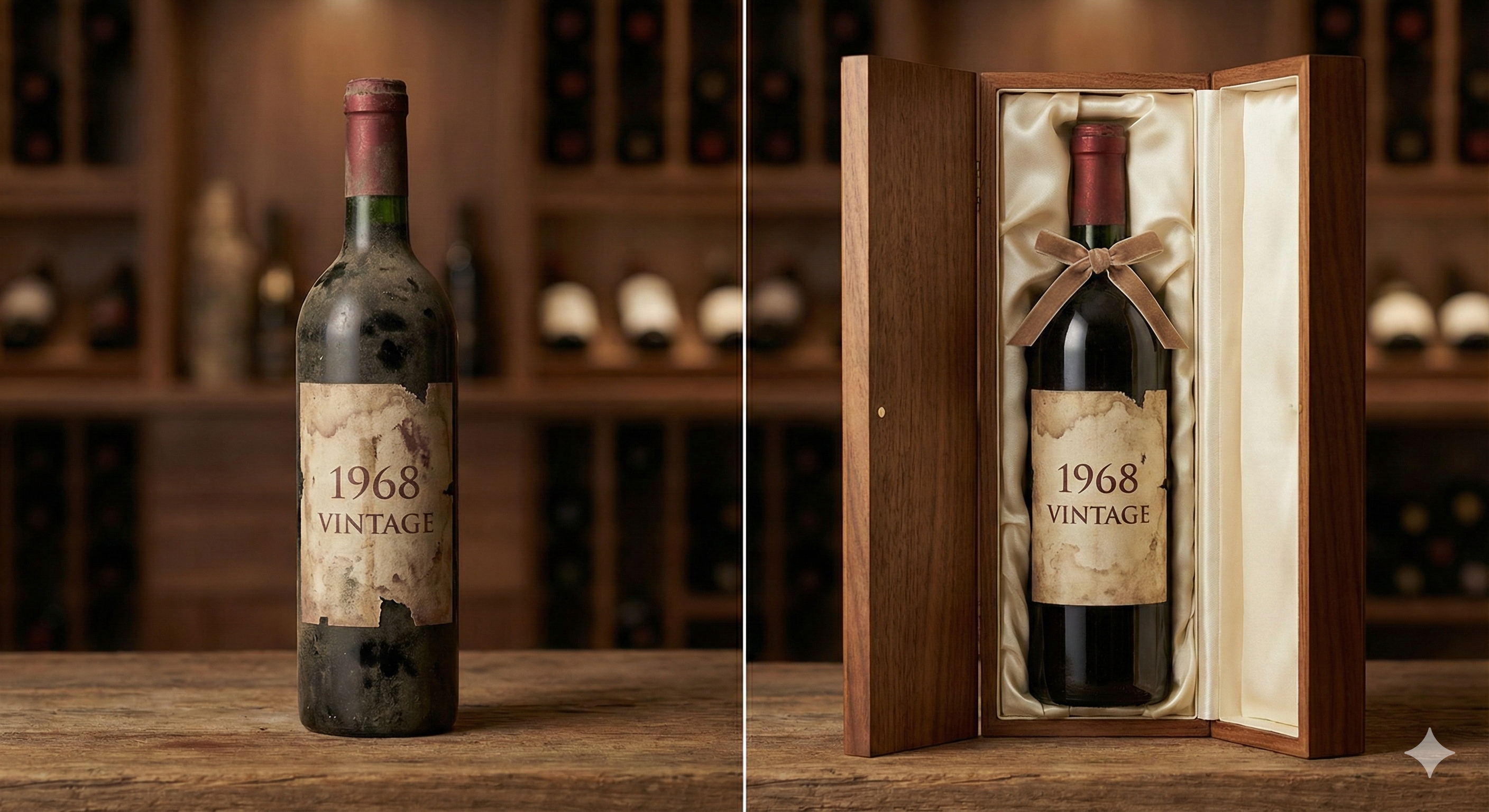 20年、30年、あるいは60年。あなたが贈る相手が人生を歩んできたのと同じ期間、そのワインは静かな地下セラーで熟成され、この日のために眠り続けてきました。ボトルの汚れやラベルの色褪せさえも、長い年月を耐え抜いてきた証であり、勲章です。